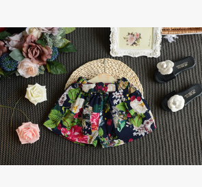 Children's clothing generation summer new girl Korean version of the tassel short-sleeved T-shirt plus floral shorts 2 piece suit shorts