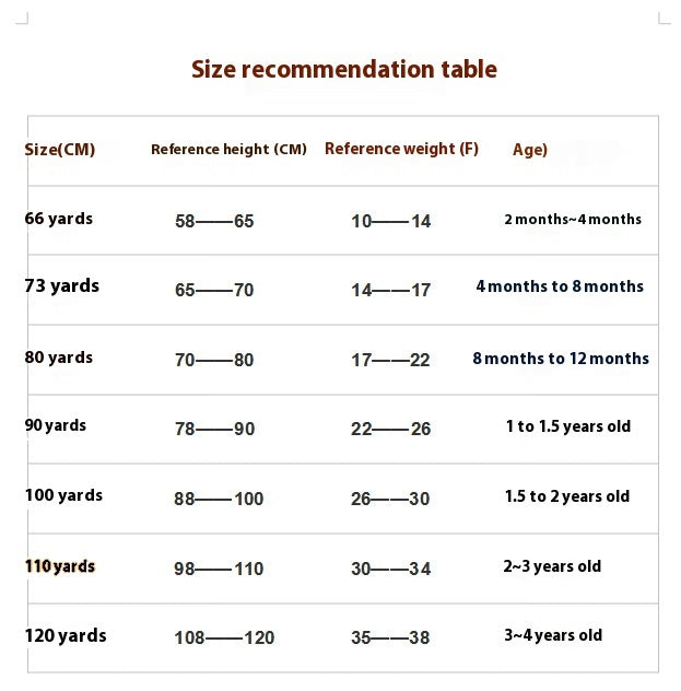 | Age | Height | Weight(lb) | US Size | UK Size |
