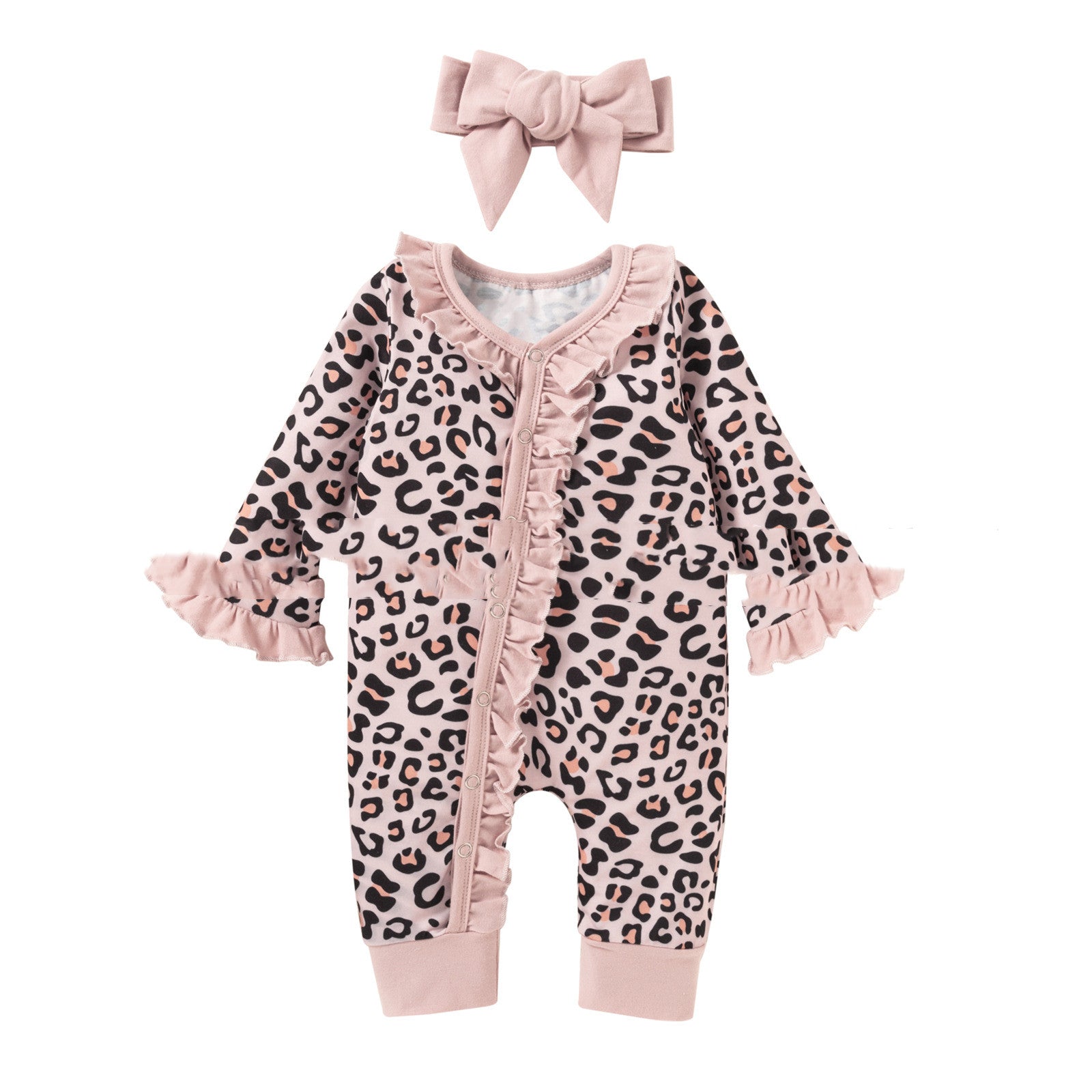 One-piece Leopard Print Single-row Long-sleeve Romper